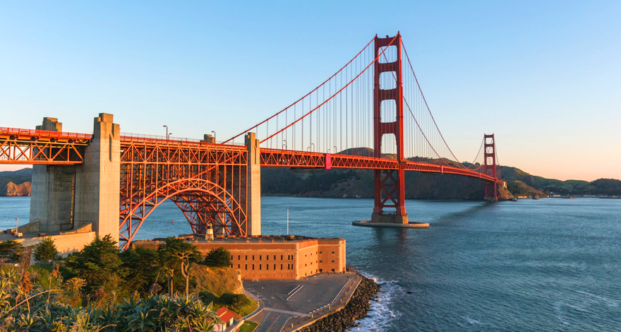 - Sáng: xe và HDV sẽ đưa quý khách băng qua cầu Bay qua vịnh San Francisco nối với Oakland. Ở đây quý khách sẽ khám phá một cây cầu với cổng bằng vàng, nó là một trong những cây cầu đẹp nhất và đươc chụp hình nhiều nhất trên thế giới. Cây cầu này hoàn thành vào năm 1937 nó là cây cầu dài nhất trên thế giới, nhưng hiện nay nó là cây cầu dài thứ nhì tại Hoa Kỳ đứng sau cây cầu Verrazano – Narrows ở TP New York.