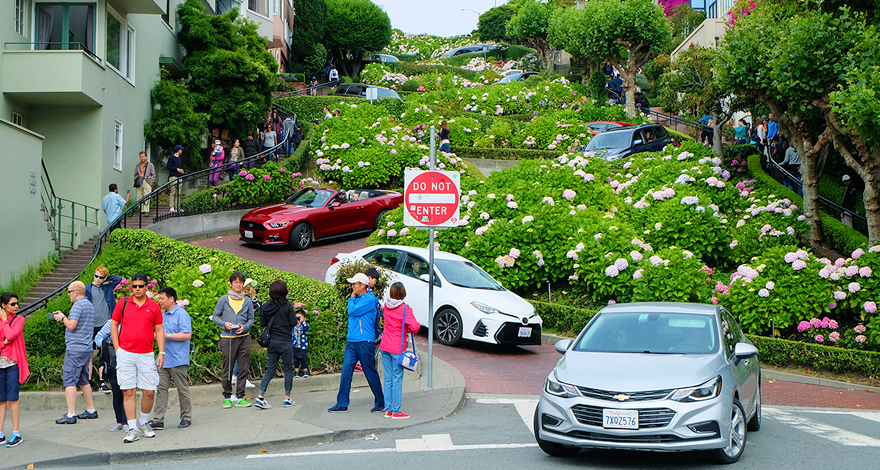 - Quý khách cũng sẽ tham quan con đường Lombard mà nổi tiếng là có dốc, một khối bao gồm 8 vòng kẹp tóc kín. Quý khách sẽ ngắm nhìn những chiếc ô tô chạy xuống những con đường quanh co nhất ở TP.San Francisco.