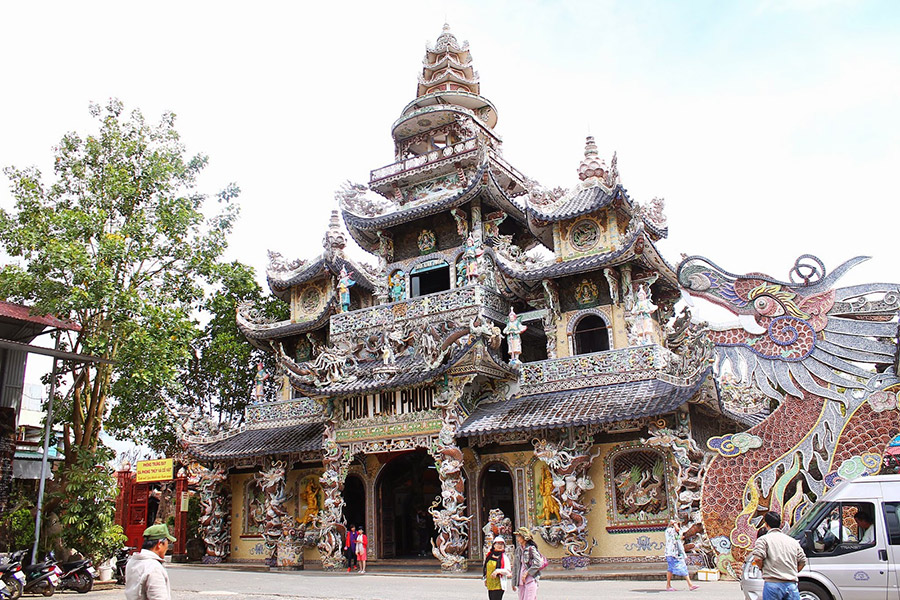 Chùa Ve Chai: Nằm ở trạm cuối của tuyến xe lửa ga Đà Lạt, chùa Ve Chai gây ấn tượng bởi kiến trúc và các bức phù điêu khảm sành vô cùng tinh xảo. Đặc biệt, ngôi chùa có tháp chuông cao 37 m cao nhất Việt Nam, Đại Hồng Chung 8 tấn rưỡi nặng nhất Việt Nam và tượng Bồ Tát Quán Thế Âm được kết từ 700.000 đóa hoa bất tử.