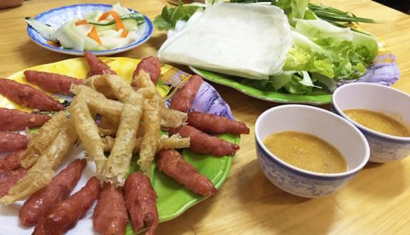 Nem nướng: Nem được nướng trên than, ăn kèm với đồ chua và nước chấm tương hột là tròn vị hấp dẫn.