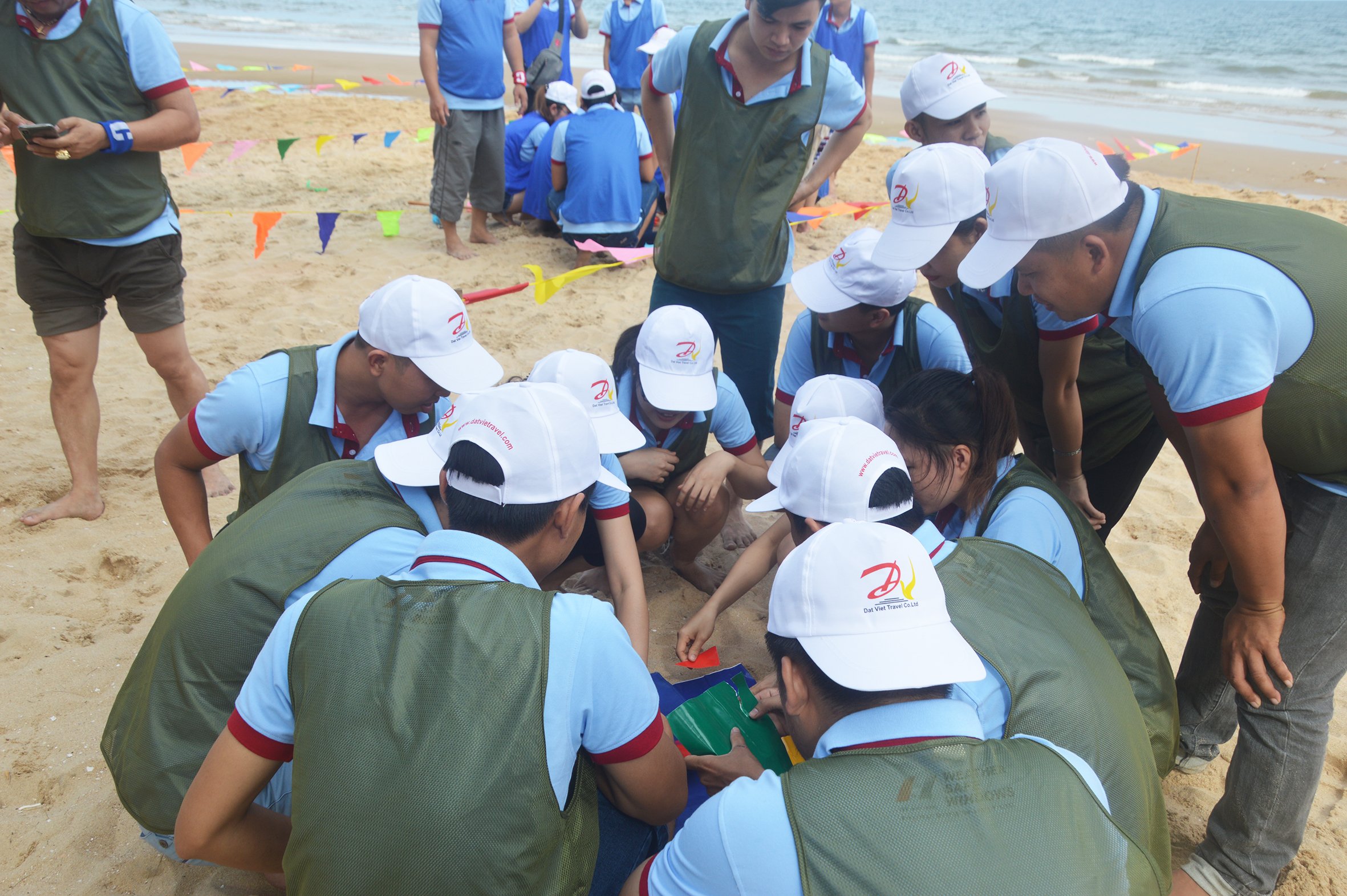 09h00: Quý khách tập trung ra bãi biển của Resort, chia đội và nhận vật dụng team, bắt đầu tham gia vào chương trình Team Building với chủ đề XÓA TAN MỌI KHOẢNG CÁCH mang tinh thần đoàn kết làm việc đội nhóm, mang tính chất thi đua vô cùng vui nhộn và hấp dẫn.